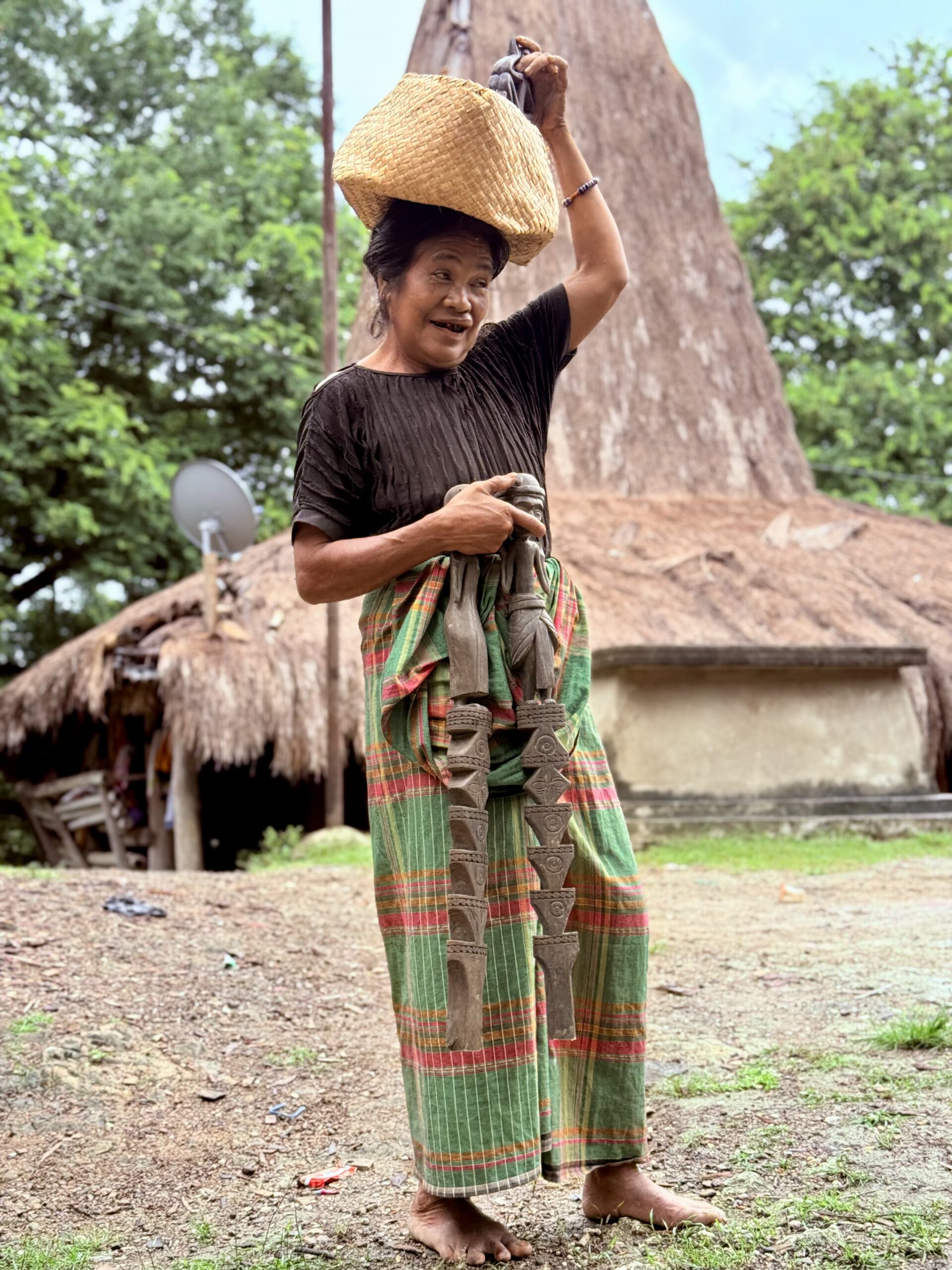 Dès l’arrivée, l’œil est captivé par les maisons aux toits pointus, construites en bambou, en bois et en chaume. Ces habitations, appelées “Uma Mbatangu”, se dressent fièrement vers le ciel, leurs toitures élancées symbolisant le lien sacré entre le monde des hommes et celui des ancêtres.