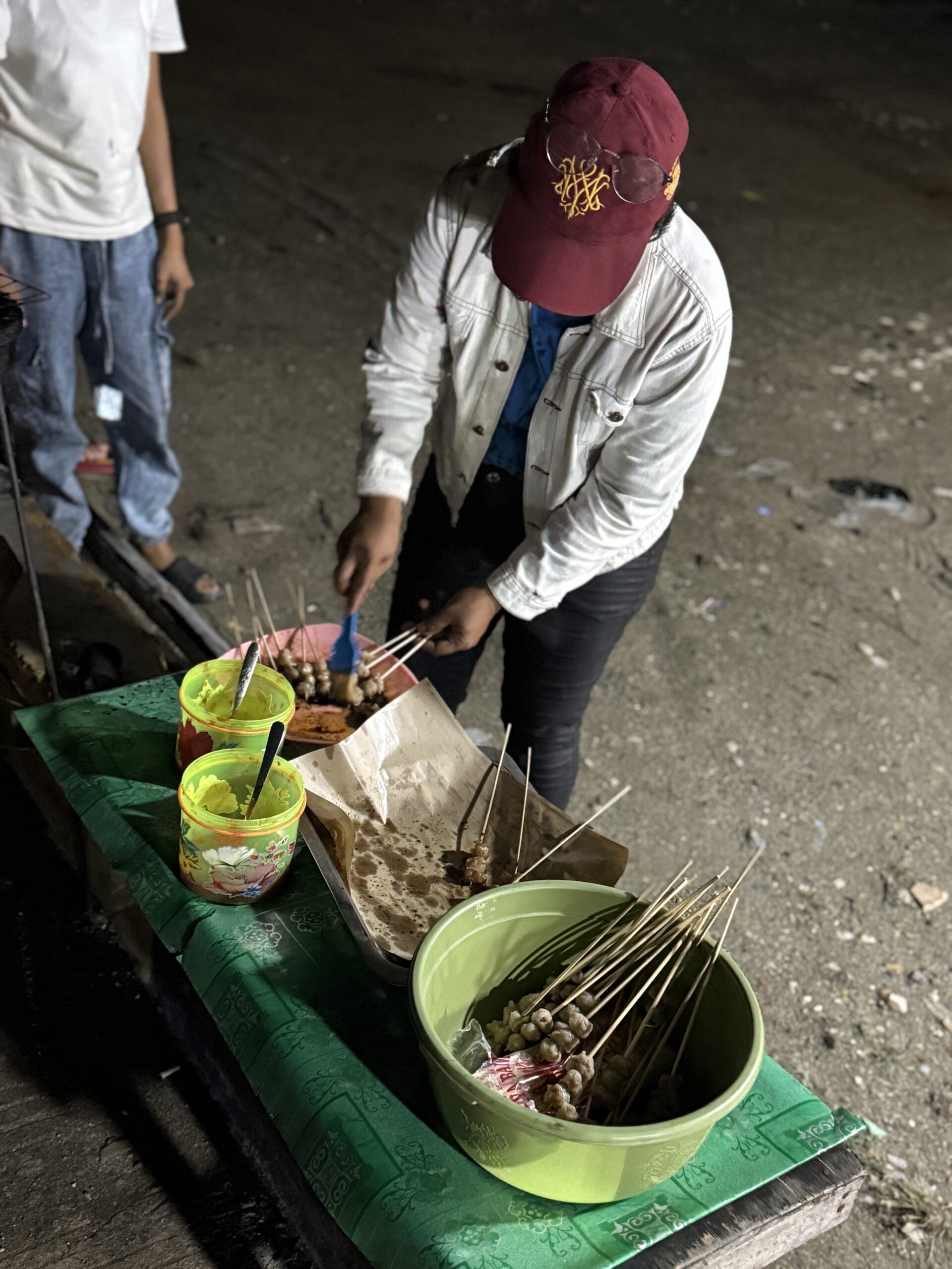 Dans la fumée parfumée des barbecues, des marchandes grillent des brochettes avec passion, transformant ce moment en rituel presque mystique. La simplicité du lieu contraste avec l’intensité de l’expérience.